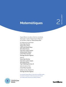 E X E M P L E 5. Decideix de quin tipus és cadascuna d’aquestes matrius quadrades. Matriu diagonal A 2 0 0 0 7 0 0 0 1 = - f p Matriu identitat B 1 0 0 1 =d n Triangular inferior C 3 2 7 4 0 4 5 6 0 0 1 9 0 0 0 6 = - f p Triangular superior D 7 0 1 10 = - d n La diagonal principal d’una matriu quadrada està formada per tots els elements de la forma aii. 1.3. Tipus de matrius quadrades N O T E N ' O B L I D I S Hi ha una matriu identitat de cada ordre. Matriu I 1 0 0 1 =d n identitat d’ordre 2 Matriu I 1 0 0 0 1 0 0 0 1 =f p identitat d’ordre 3 6 Escriu matrius que compleixin les condicions següents. a) Matriu diagonal d’ordre 4 que compleixi que aii = 7. b) Matriu identitat amb tres files. 7 Escriu matrius que compleixin aquestes condicions. a) Diagonal d’ordre 3. b) Triangular superior amb tres columnes, de manera que els elements diferents de 0 compleixin que aij = i + j. A C T I V I T A T S Diagonal principal … … … … … … … … … A a a a a a a a a a a a a a a a a n n n n n n nn 11 21 31 1 12 22 32 2 13 23 33 3 1 2 3 =f p Segons com siguin els elements que formen una matriu quadrada , pot ser : Matriu triangular superior Tots els elements situats per sota de la diagonal principal són zeros. Matriu triangular inferior Tots els elements situats per sobre de la diagonal principal són zeros. Matriu diagonal Tots els elements situats fora de la diagonal principal són zeros. Matriu identitat o matriu unitat És una matriu diagonal en la qual tots el s el ements de la diagonal principal són uns. Es denota per I. … … … … … … … … … I 1 0 0 0 0 1 0 0 0 0 1 0 0 0 0 1 =f p … … … … … … … … … A a a a a 0 0 0 0 0 0 0 0 0 0 0 0 nn 11 22 33 =f p … … … … … … … … … A a a a a a a a a a a 0 0 0 0 0 0 n n n nn 11 21 31 1 22 32 2 33 3 =f p … … … … … … … … … A a a a a a a a a a a 0 0 0 0 0 0 n n n nn 11 12 22 13 23 33 1 2 3 =f p 12